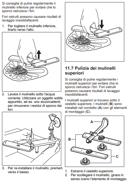 Come pulire, smontare e montare i bracci irroratori della lavastoviglie