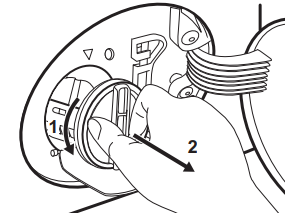 7. Ruotare il filtro in senso antiorario per rimuoverlo.