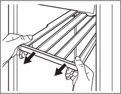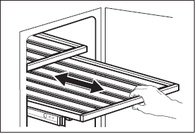 3. Afferrare lo scaffale al centro, sollevarlo leggermente ed estrarlo dall’armadietto del vino.