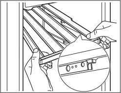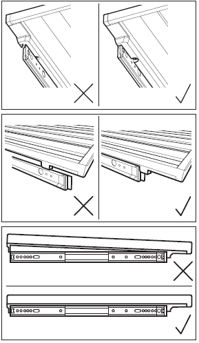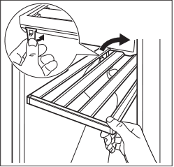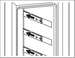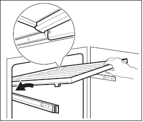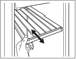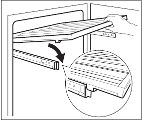 5. Estrarre più volte il ripiano e spingerlo nuovamente nell'apparecchio, quindi premerlo nuovamente con decisione verso il basso per verificare che sia agganciato correttamente alle guide